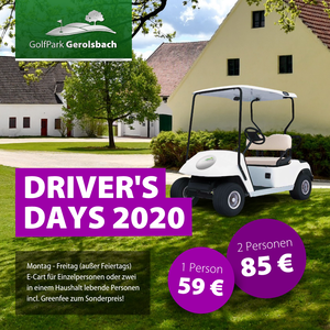 Im GolfPark Gerolsbach findet bis Ende Oktober von Montag bis Freitag die Driver`s Day-Aktion statt. Darin enthalten ist ein E-Cart für Einzelpersonen oder zwei Personen lebend in einem Haushalt inkl. Greenfee zum Sonderpreis: