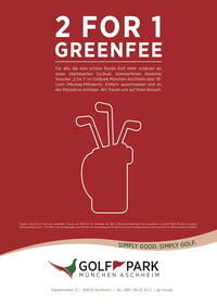 Kommen Sie mit einem Gast in den Golfpark und spielen Sie zu zweit 18-Loch zum Preis von einem (nur gültig im Aktionszeitraum jeweils Montag bis Mittwoch)