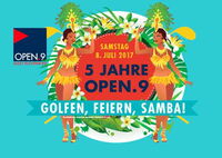 OPEN.9 feiert am 08.07.17 Geburtstag mit dem Turnier „5 Jahre OPEN.9“ ab 15 Uhr, dem Nachtgolfturnier „OPEN.9@NIGHT“ und einem kostenlosen Schnupperkurs für Noch-Nicht-Golfer um 17 Uhr. Das Bälle schlagen auf der Range ist ab 15 Uhr kostenlos, ein Karibisches Buffet, eine Valdo Prosecco Bar sowie Drinks & Cocktails laden auf der Sonnenterrasse zum Chillen im Liegestuhl am OPEN.BEACH ein.