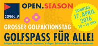 Offener Aktionstag am Sonntag, den 17. April 2016 für Jedermann bei OPEN.9 Golf Eichenried als Auftakt für die Saison 2016. „Vorbeikommen, ausprobieren, Spaß haben“ ist das Motto der modernen Golfanlage. Auf dem 9-Loch-Golfplatz, dem riesigen Übungsgelände und dem OPEN.HOUSE stehen viele kostenlose Aktionen sowie Golfspaß für die ganze Familie auf dem Programm: