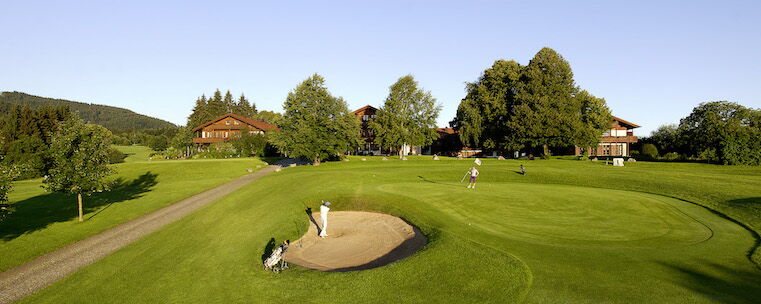 Der Margarethenhof begeistert mit einem weitläufigen, naturbelassenen 18-Loch Golfplatz, der sich malerisch um ihn herum erstreckt. Eingebettet zwischen gepflegten Fairways, Biotopen, Wasserhindernissen und Bunkern liegt er auf stolzen 950 Metern Höhe und bietet somit einen der höchstgelegenen Abschläge in ganz Deutschland. Ein atemberaubender Blick auf die majestätische Bergwelt eröffnet sich unseren Gästen von hier aus. Ein wahrlich besonderer Ort, der dem hektischen Alltag entfliehen lässt. Die Lage des Margarethenhofs inmitten der idyllischen Voralpenkulisse ist einzigartig und seine 18-Loch-Golfanlage ist absolut unvergleichlich.