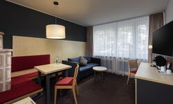 Zimmer: Die Zimmer im Mercure Hotel sind hell und modern eingerichtet. Sie verfügen über einen gemütlichen Sitzbereich und Sat-TV. WLAN ist in allen Bereichen verfügbar.